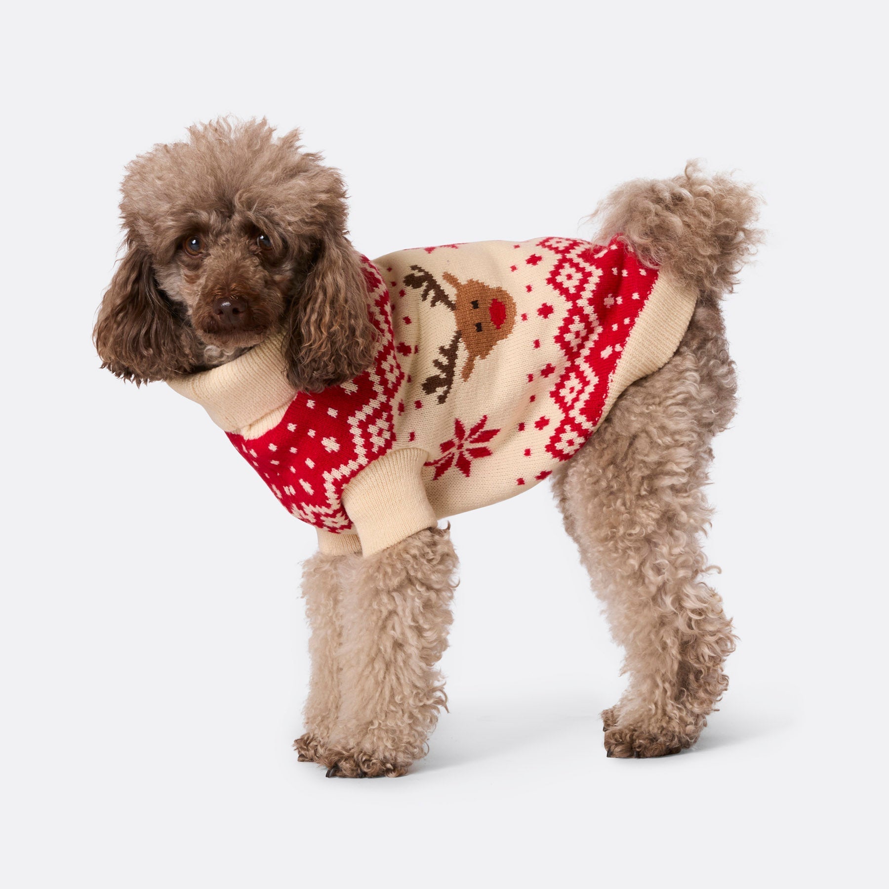Stylish Holiday Cheer for Dogs Elevate your dog's festive wardrobe with our Red Retro Reindeer Sweater. This charming sweater not...