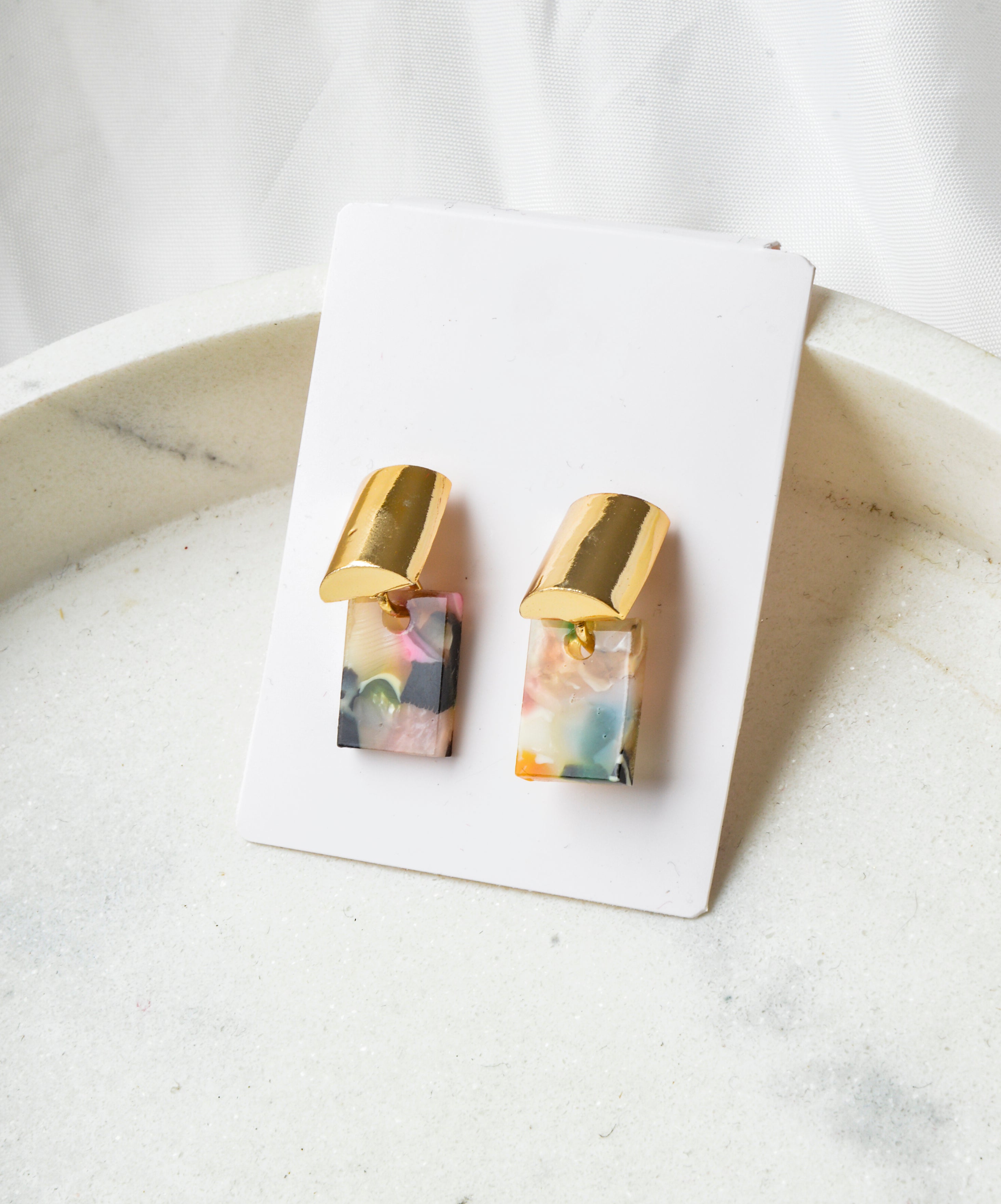 Earrings - Marble Color Cube