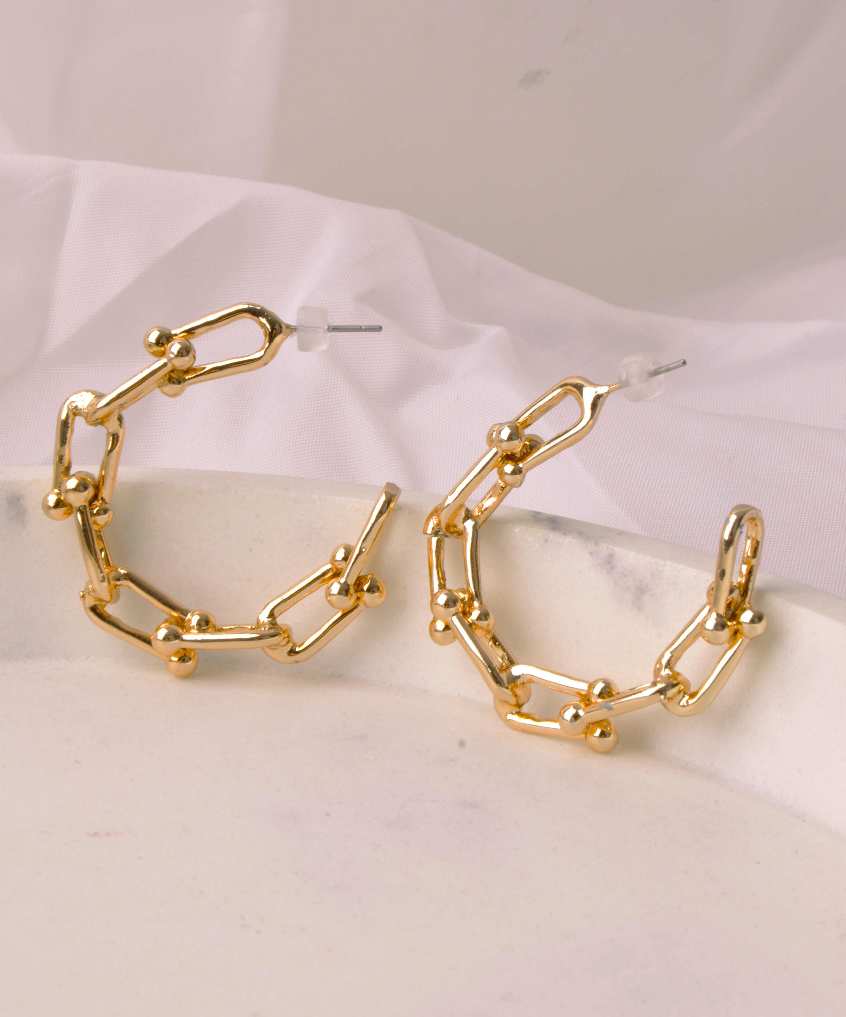 Chic and Modern Statement Piece Step out in style with the Gold Moon Chain Earrings, designed to enhance your wardrobe...