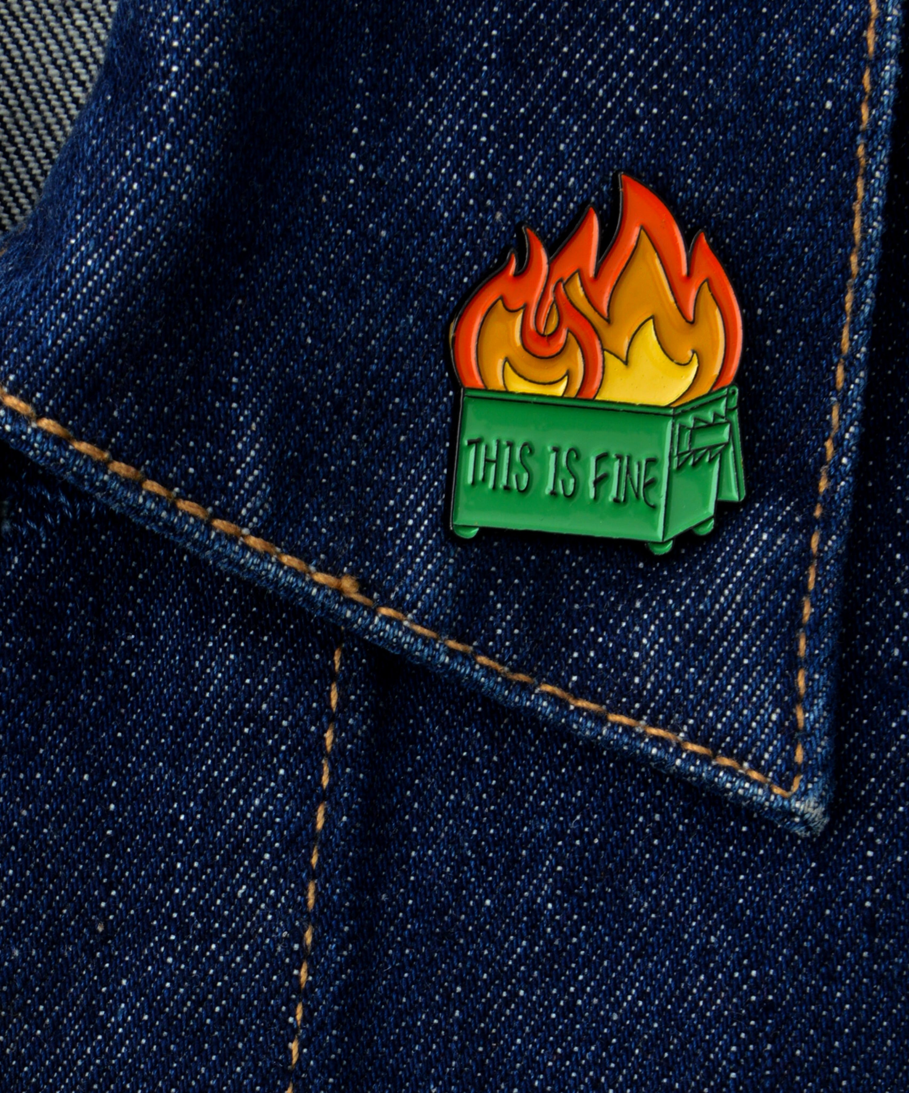 Bring Humor to Your Style Add a playful twist to your look with the This is Fine Container Enamel Pin....