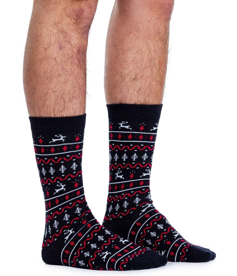 Men's Red and Black Fair Isle Socks (Fits Sizes 8-11M)