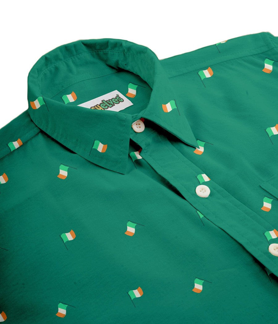 Wave your Irish flag proudly with our Men's Irish Flag All Over Button Down Shirt. Adorned with a vibrant pattern of tiny flags, this shirt is the perfect way to celebrate your heritage while keeping your style fresh and lively.
