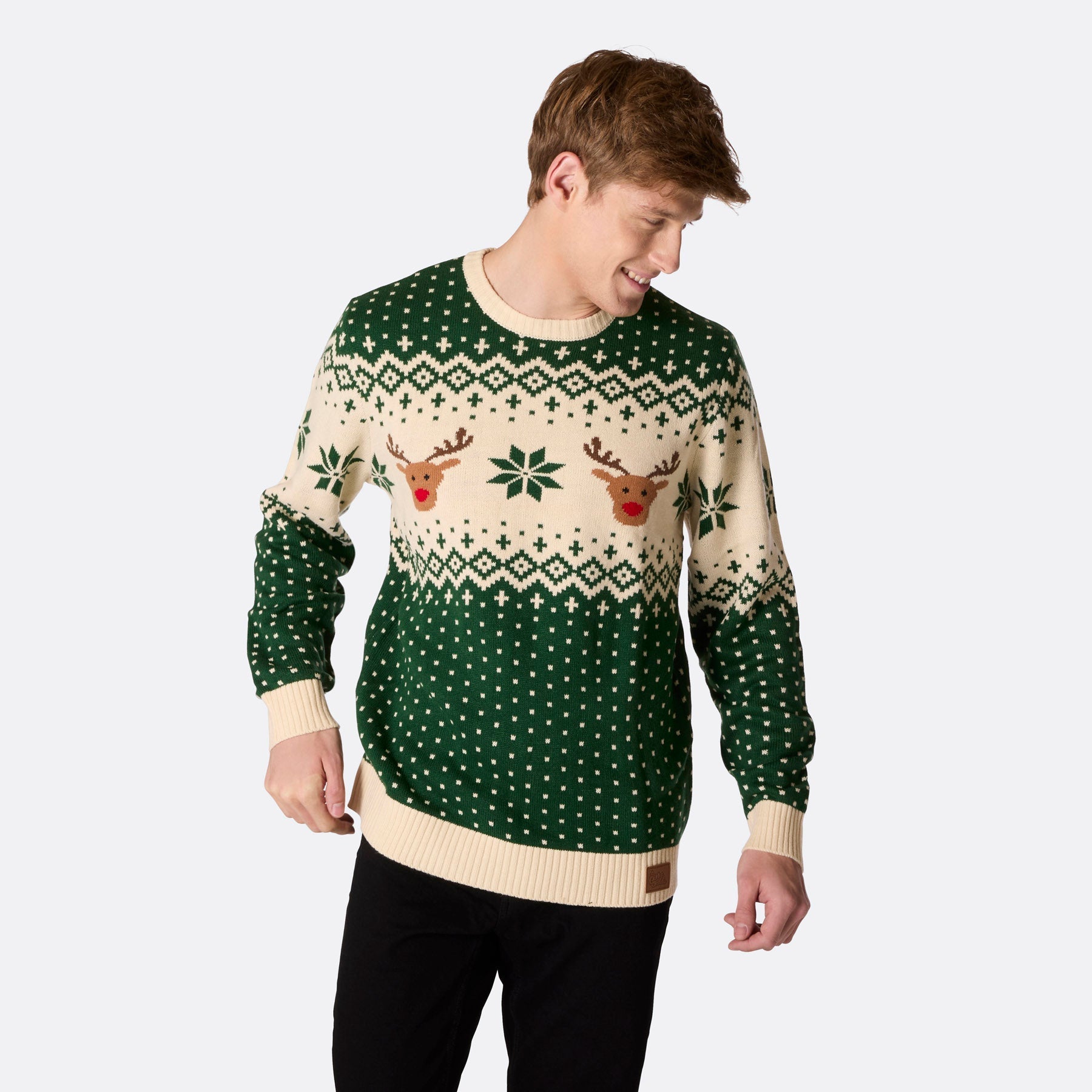 Men's Retro Reindeer Green Sweater