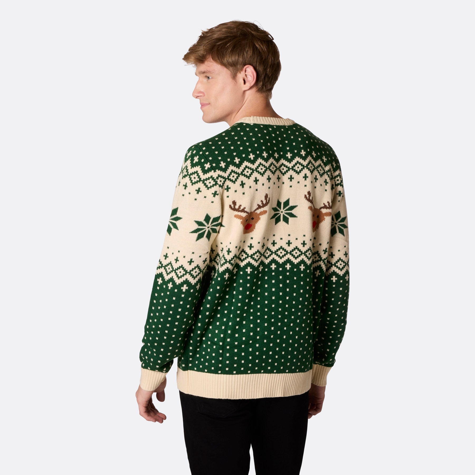 Celebrate in Style Our Men's Retro Reindeer Green Sweater brings a festive vibe to your holiday wardrobe. Its cheerful design...