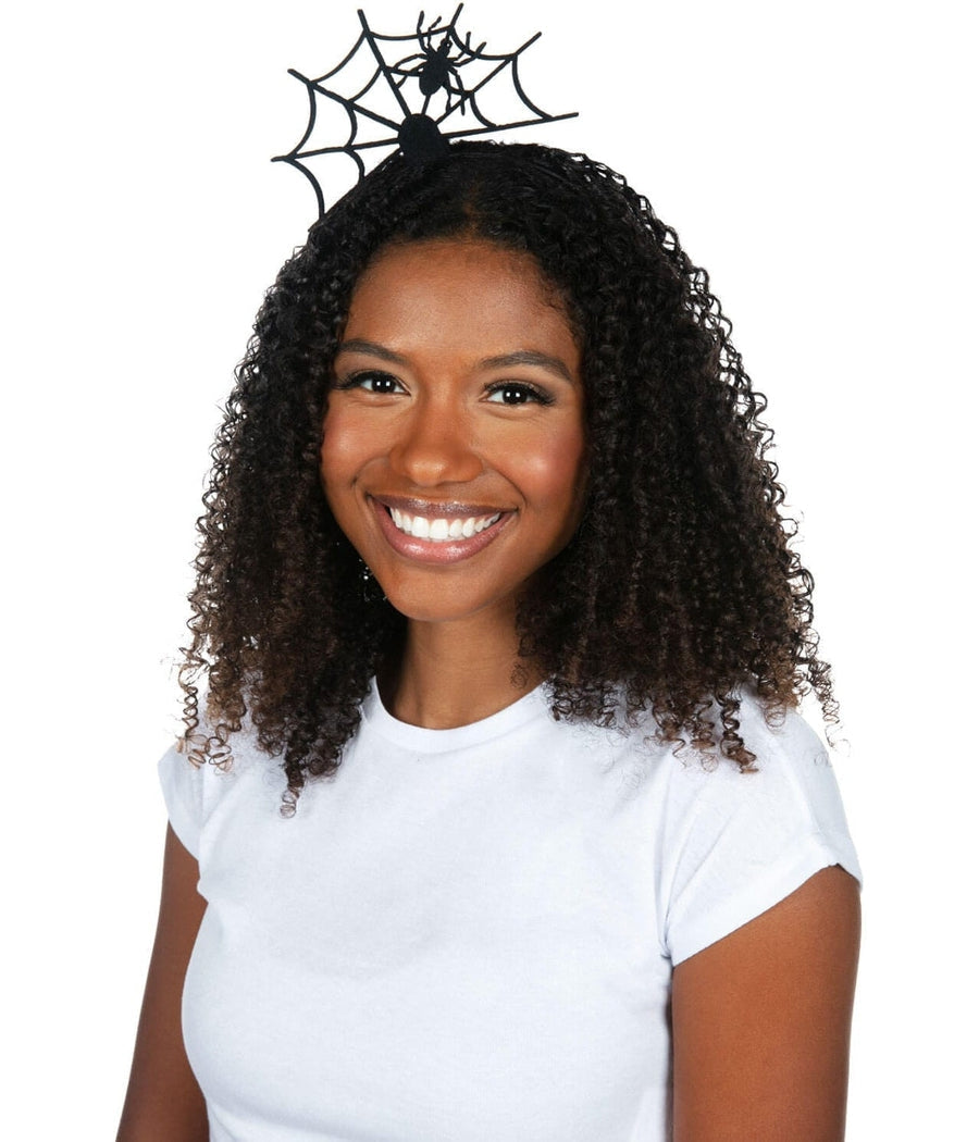 Featuring a lightweight construction, the headband comfortably fits over your styled hair while showcasing a stunning spider and web design. It's a classic accessory that enhances any spooky outfit.