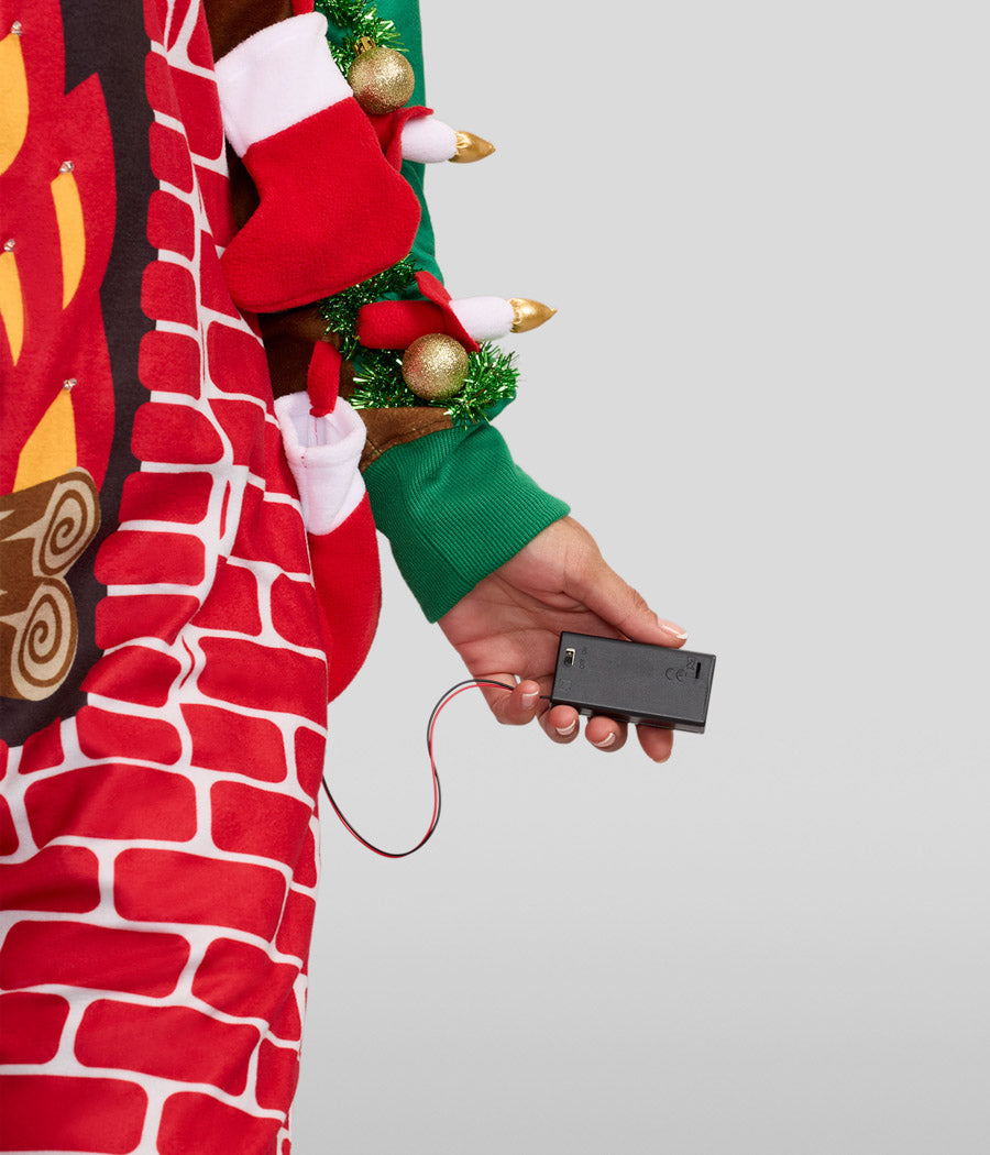 Women's Festive Fireplace Light Up Jumpsuit