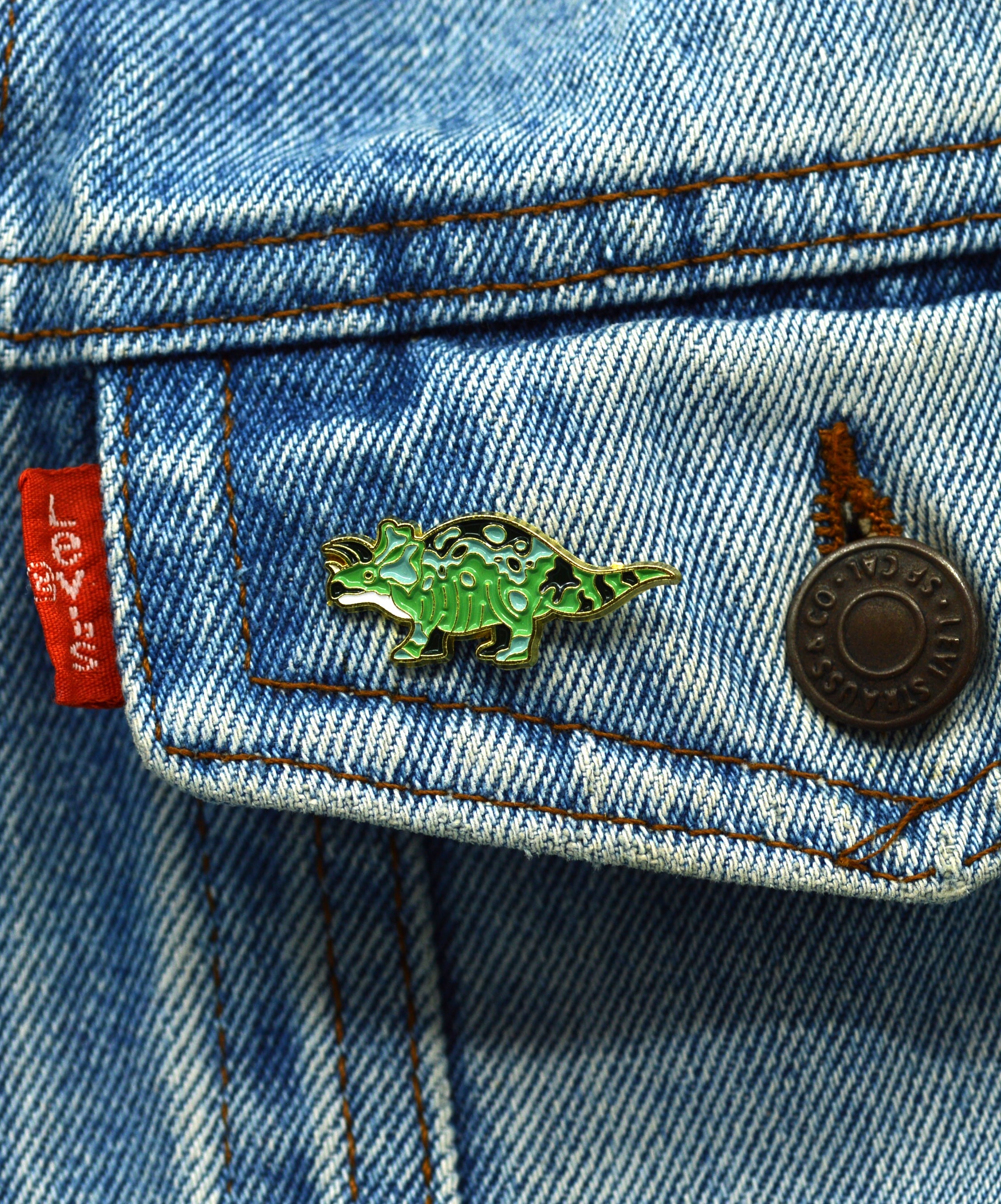 Showcase Your Dino Love Add a touch of fun with the Triceratops badge in vibrant green. This playful pin is...