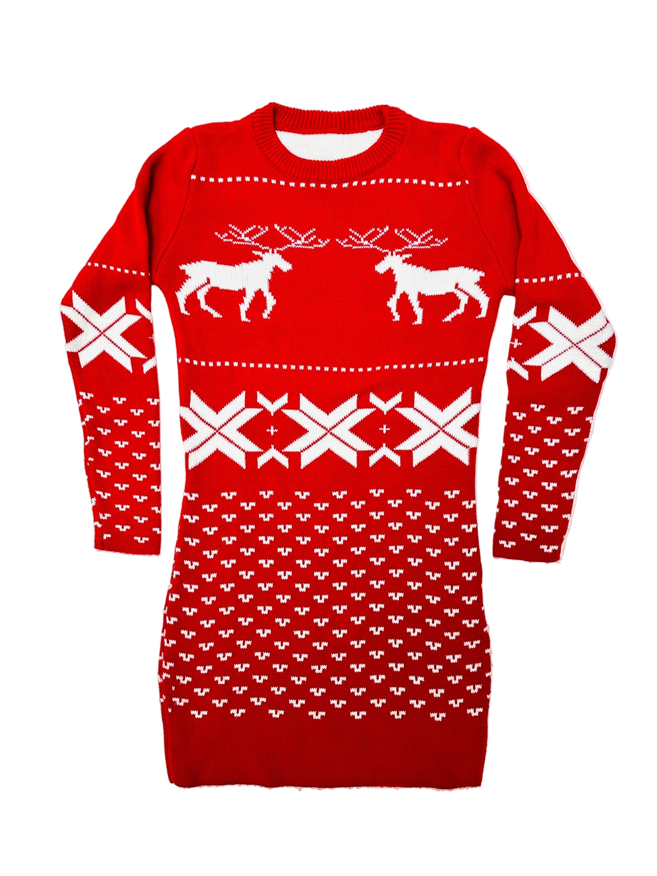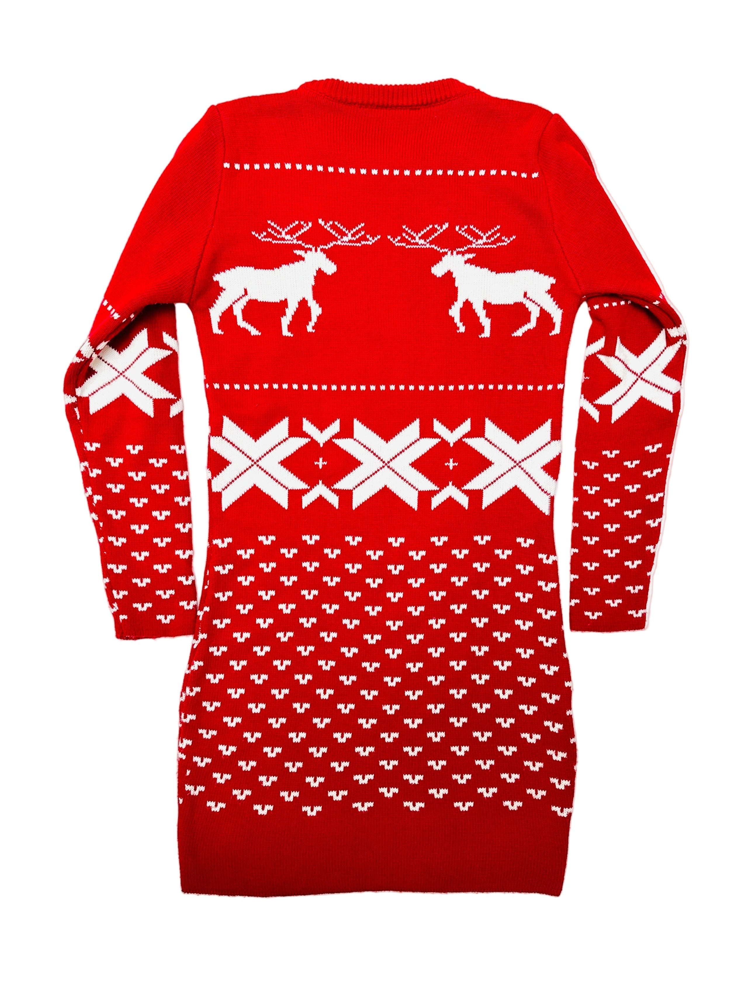 Vintage Christmas Sweater Dress - Reindeer Design