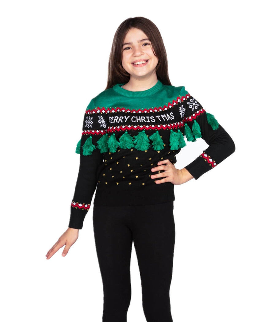 Girl's Christmas Tree Tassel Ugly Christmas Sweater