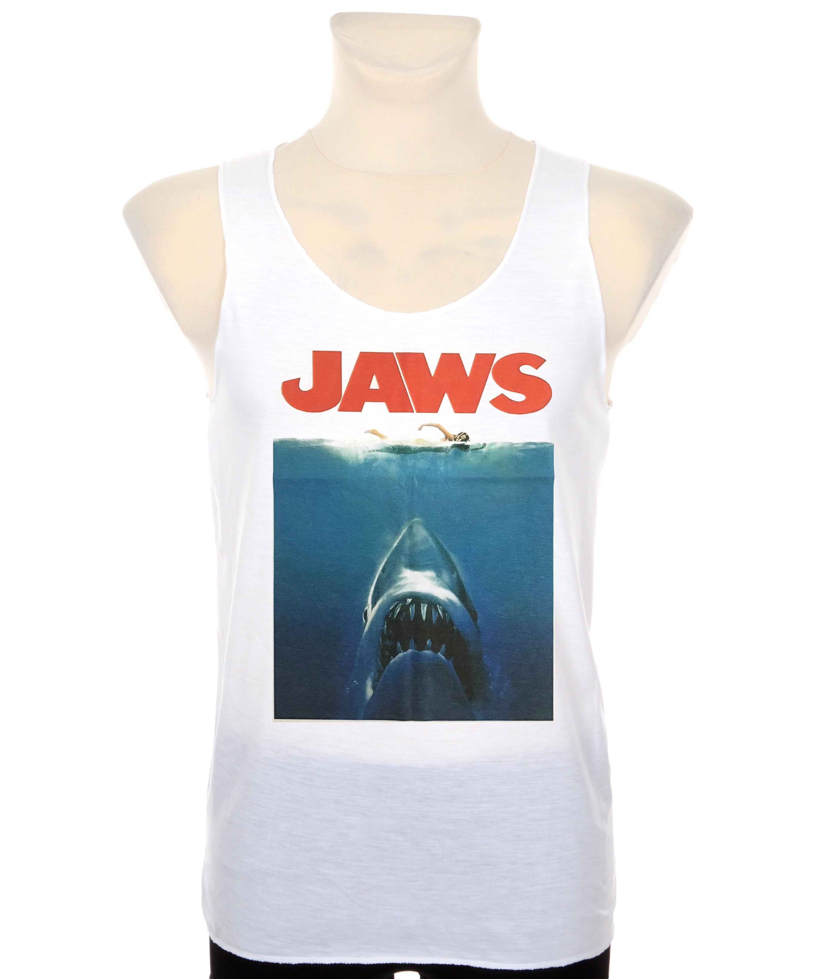 Make Waves with Style Stand out from the crowd with our Shark Graphic Movie Tank Top. Perfect for ocean lovers...