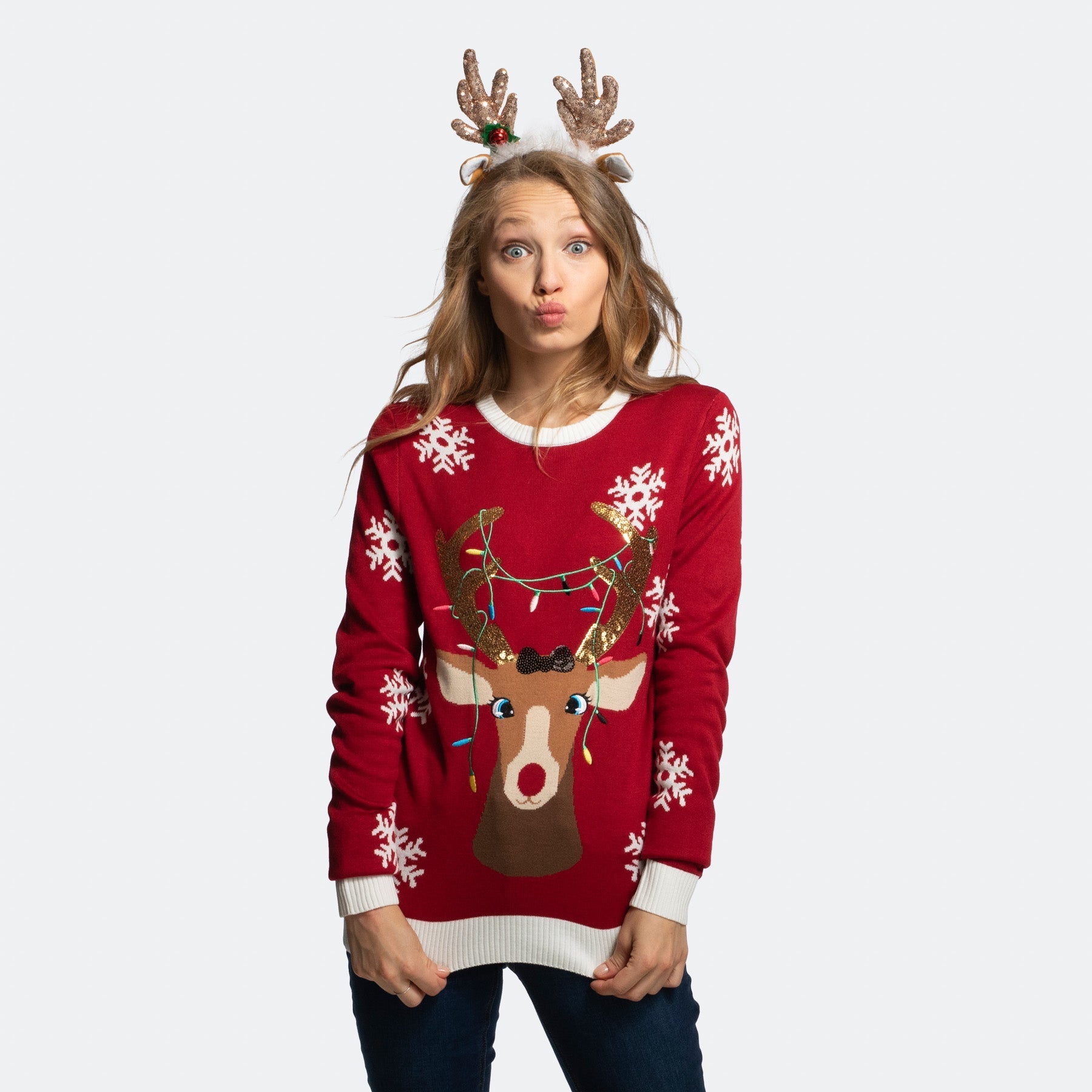 Women's Cute Reindeer Christmas Sweater for Whimsical Charm
