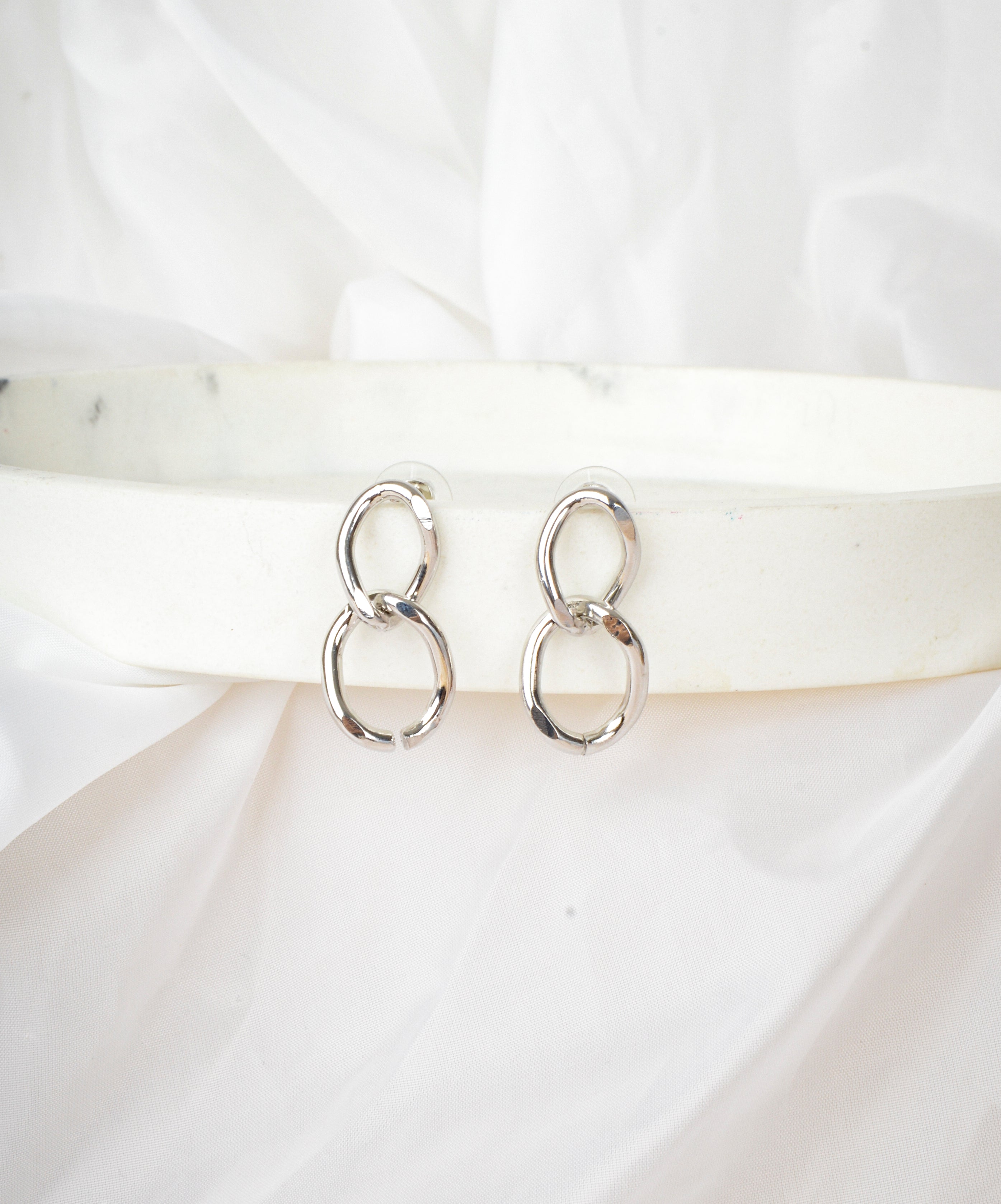 Hopeiset ketjukorvakorut